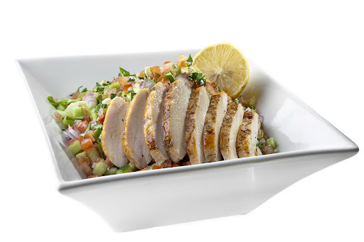 חזה עוף חם מוקפץ ברוטב טריאקי וצ'ילי מתוק בתוספת סלט אבוקדו